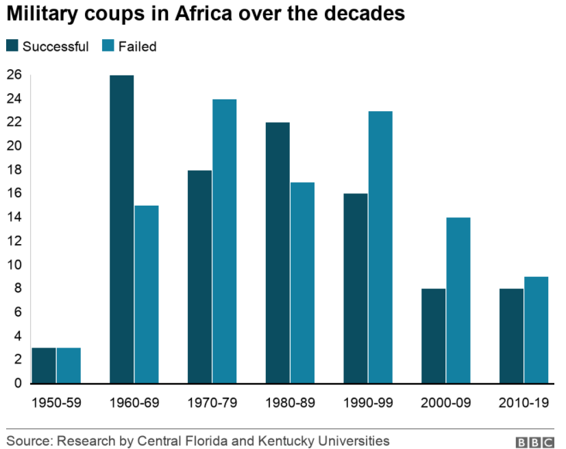 Coups dropped to around two a year in the two decades up to 2019.